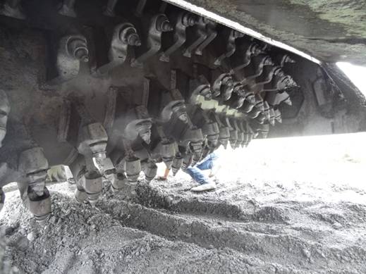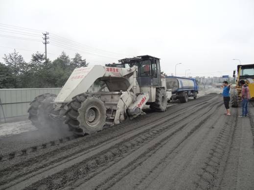 2014年6月,我公司冷再生機(jī)**進(jìn)入四川施工。先進(jìn)入四川的是一臺(tái)600馬力WR2300L冷再生機(jī),由河南隆裕工程公司于2011年向我公司購(gòu)買(mǎi),已工作了近四年,機(jī)器狀態(tài)仍然很好。冷再生工程為郫縣唐太路道路改造工程,主要路基的大修采用冷再生工藝。唐太路為水穩(wěn)路基結(jié)構(gòu),與華東等大部分地區(qū)不同的是路基下有大量的鵝卵石,這會(huì)對(duì)銑刨轉(zhuǎn)子造成很大的磨損,如果機(jī)器不是裝備了可折卸刀庫(kù)重型轉(zhuǎn)子,這個(gè)工程是不可能做下去的,刀具的損耗很大,齒套也有較大的磨損。施工隊(duì)伍在高經(jīng)理的帶領(lǐng)下,無(wú)論是施工速度還是施工質(zhì)量均獲得管理方的好評(píng),打消了承包方最初對(duì)國(guó)產(chǎn)設(shè)備的疑慮。